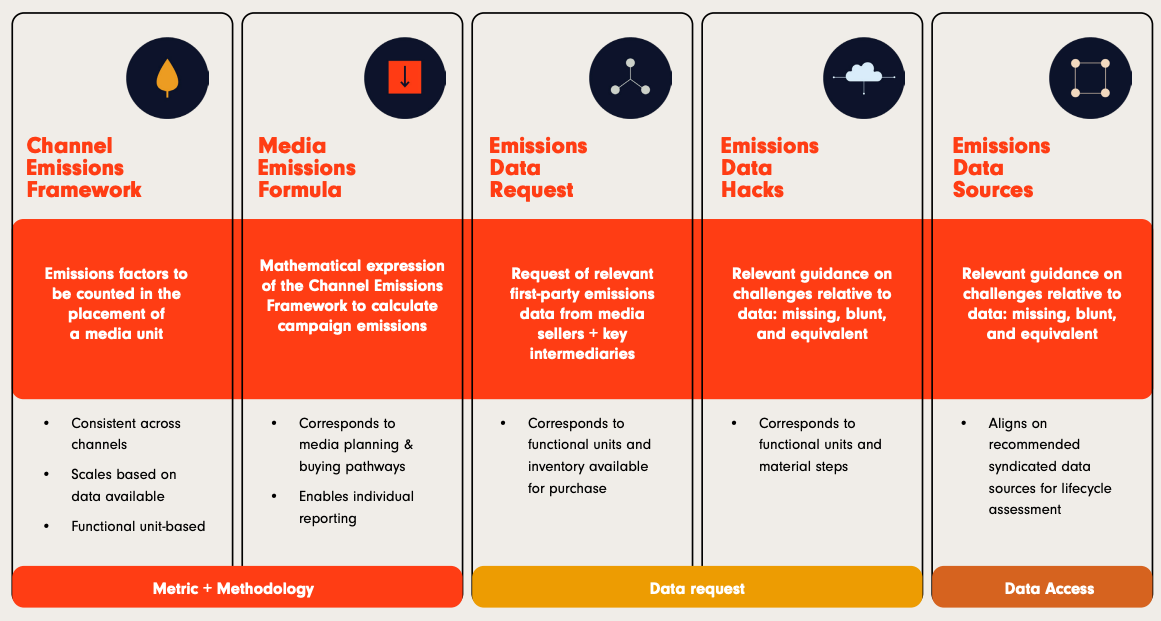 The framework focuses on measuring emissions from TV, digital, and out-of-home advertising, and it plans to include print, radio, and film formulas.