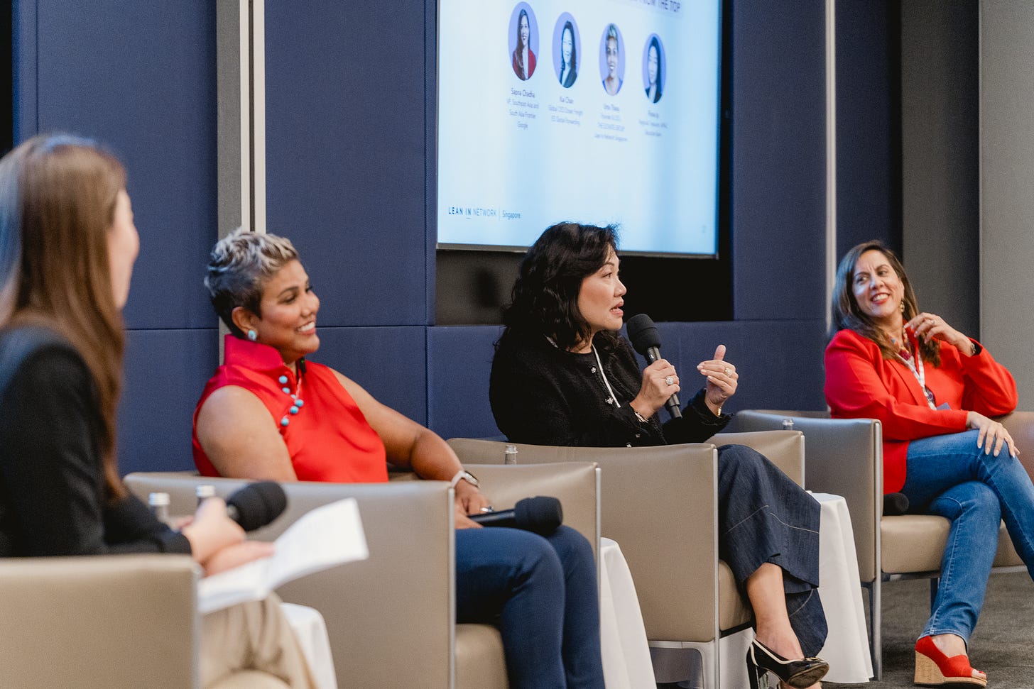 At the heart of the event was a dynamic panel discussion featuring Sapna Chadha, VP of Southeast Asia and South Asia Frontier at Google; Kai Chan, former Global CEO of Ocean Freight at ISS Global Forwarding; and Uma Thana, Founder & CEO of The Elevate Group and Lean In Network Singapore. Fiona Ip, Regional Treasurer, APAC at Deutsche Bank, moderated the conversation.
